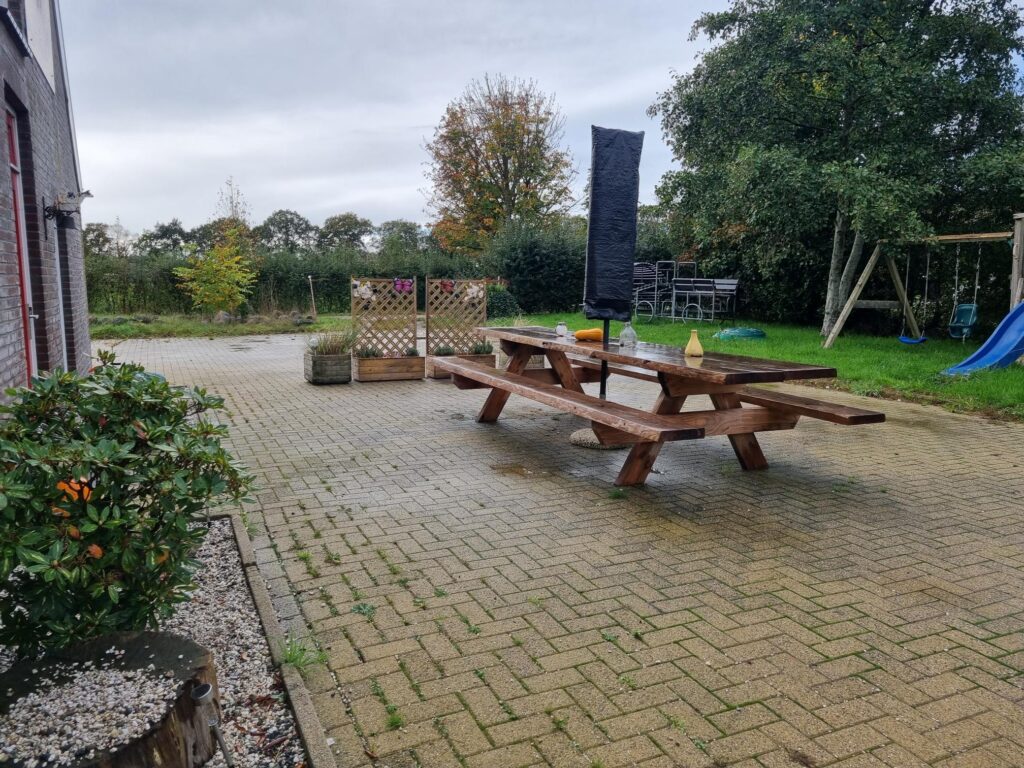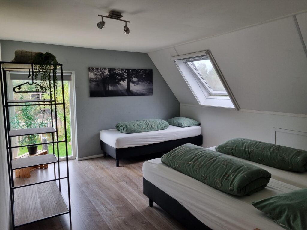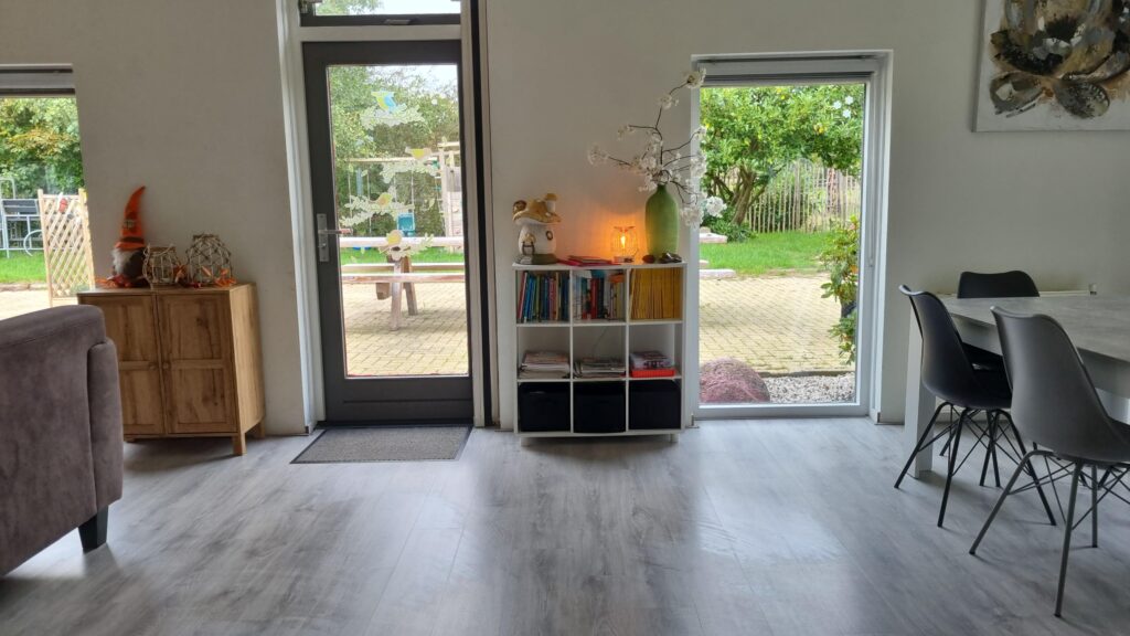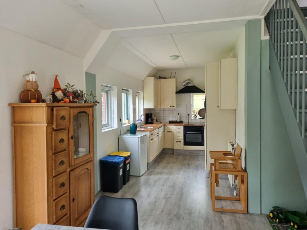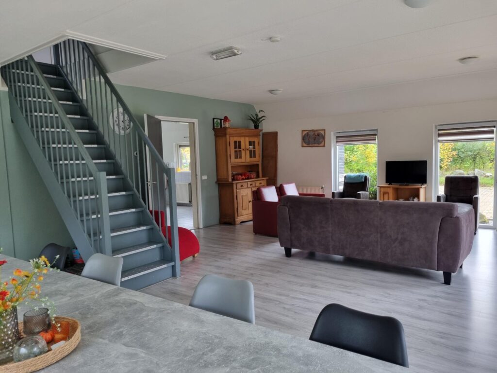 Een ruim natuurhuisje gelegen naast ons biologisch melkveebedrijf. Heerlijk vrij gelegen in het mooie dorp Stuifzand, vlakbij Hoogeveen. De woning is ingericht voor 10 personen en 1 baby. Een complete keuken met o.a. vaatwasser, elektrisch kookplaat, oven en magnetron. Voor de jongste is er een ledikant, box en kinderstoel aanwezig. Eventueel kan er op verzoek een campingbedje extra worden geplaatst en extra kinderstoel. Gezelschapspellen, sjoelbak, boekenkast en kleurboeken met stiften zijn aanwezig. Slaapkamers zijn voorzien van 1pers.boxsprings. Bij een aantal kamers zijn kamerschermen gebruikt, zo heeft u toch uw privacy. Een grote tuin om heerlijk van te genieten, speeltoestellen voor de kinderen, een tennisbaan en voetbaldoelen waar zonder extra kosten gebruik van kan worden gemaakt. Rackets en ballen wordt borg voor gevraagd. Prachtig uitzicht over de landerijen en meerdere zitjes waar u lekker kunt zitten. Een kijkje nemen bij ons op het bedrijf, dat kan in overleg.